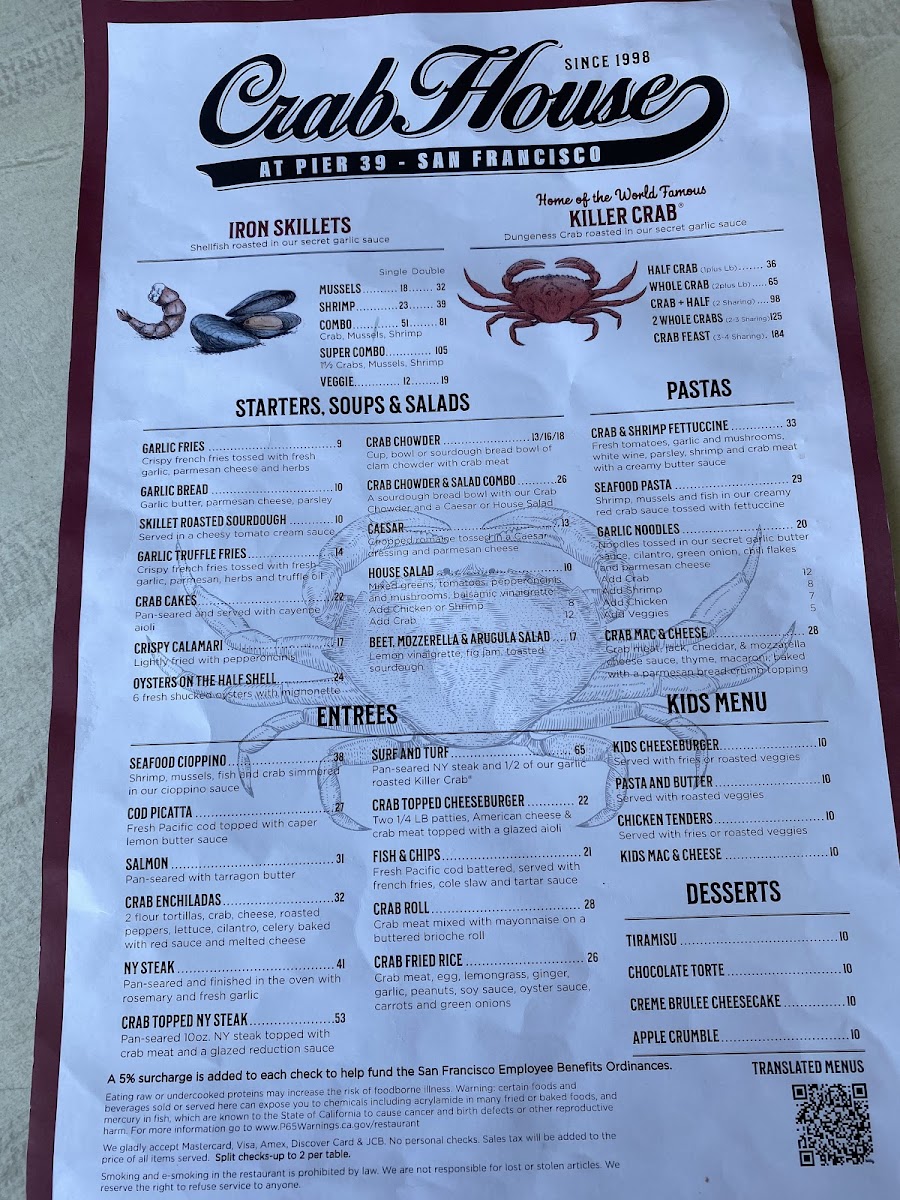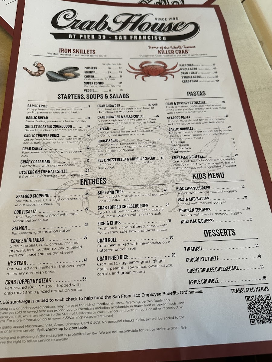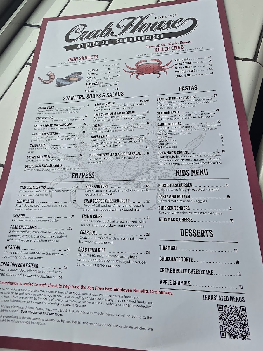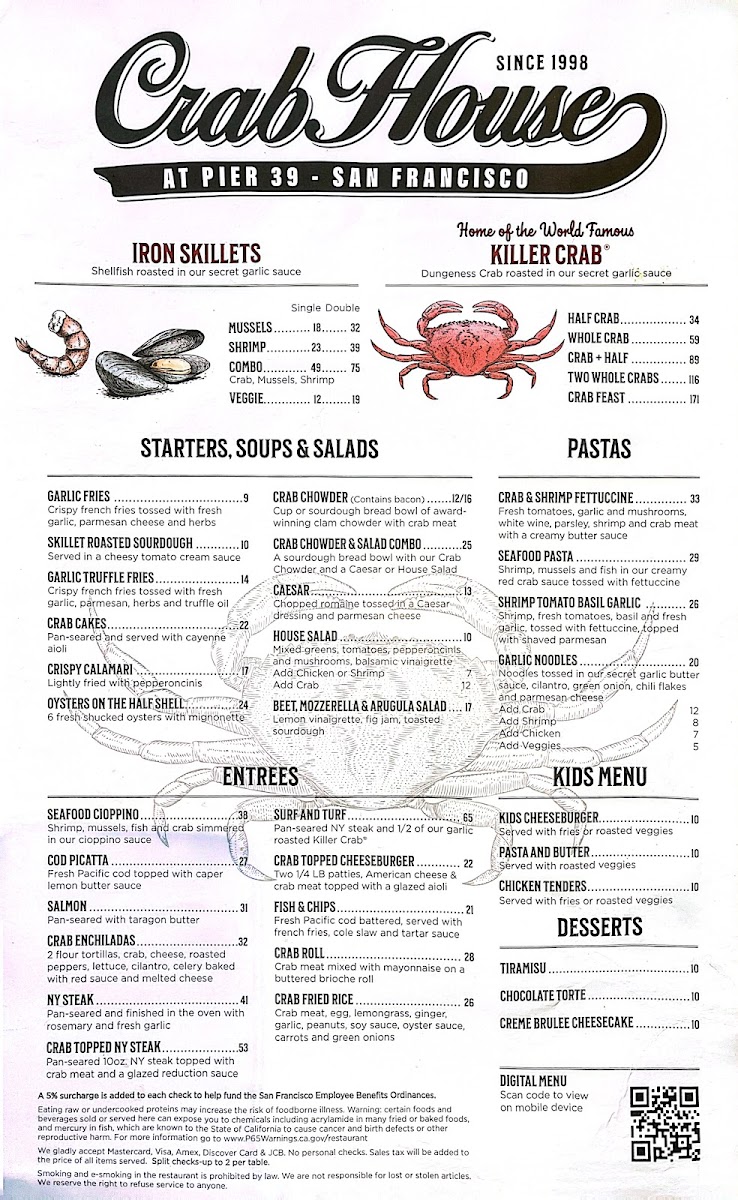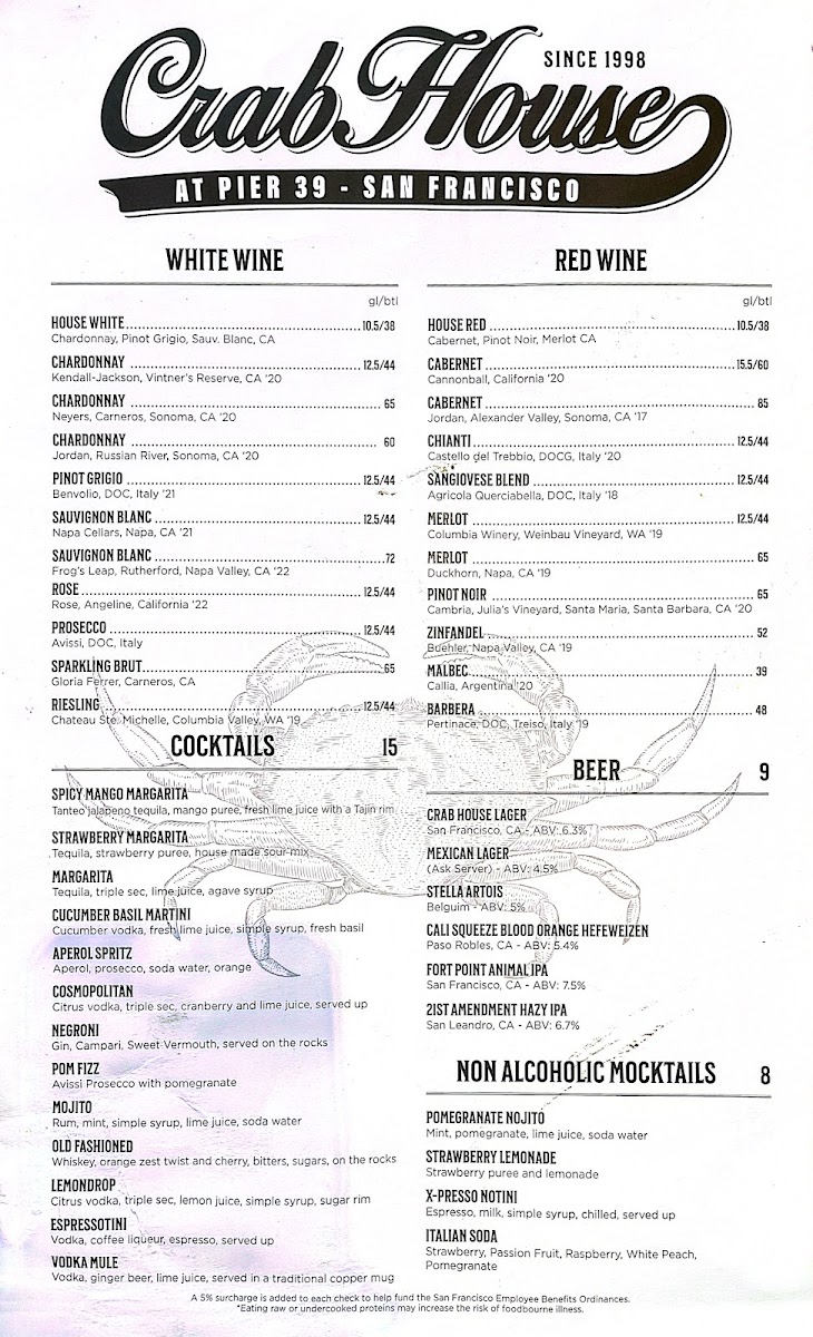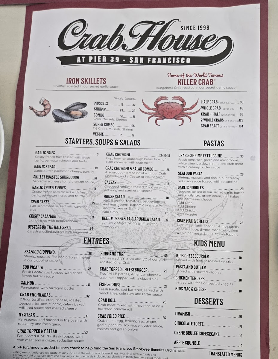 Crab House at Pier 39 Menu